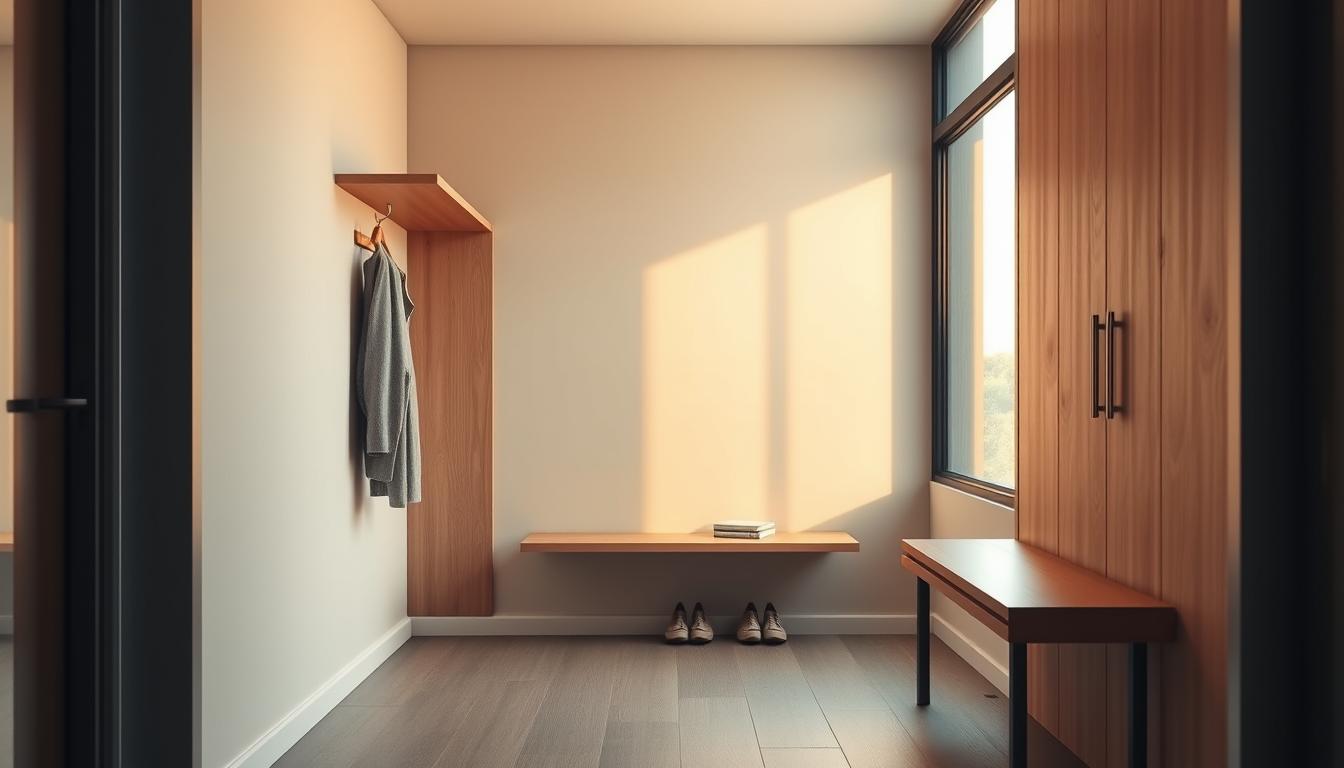Planen Sie verschiedene Elemente wie Haken, Ablagen und Stangen systematisch ein. Jeder Zentimeter sollte optimal genutzt werden, ohne den Raum zu überladen.